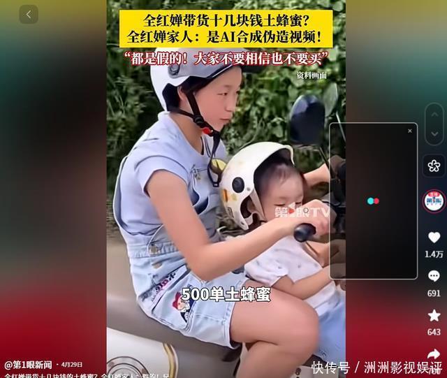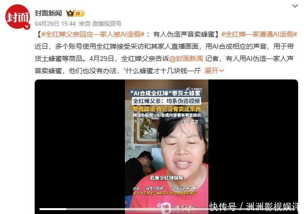 在某电商平台,商家以致明码标价:“明星声息200元一条,素东谈主50元包教授”。 更荒唐的是,骗子们连全红婵家东谈主也不放过, AI合成的“全爸爸”用方言吆喝骆驼奶粉, 布景却是编著自她哥哥全进华的真实助农视频。 消费者收到发霉蜂蜜后, 震怒的锋芒却转向全红婵一家:“奥运冠军也割韭菜?” 全红婵家东谈主也连速即泄露,可吊问早已团结驳斥区。