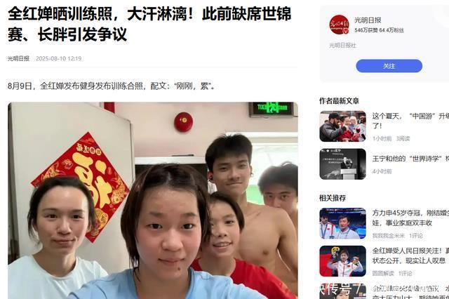 信息开端:光明日报2025-08-10全红婵晒磨练照,大汗淋漓!此前缺席世锦赛、长胖激发争议